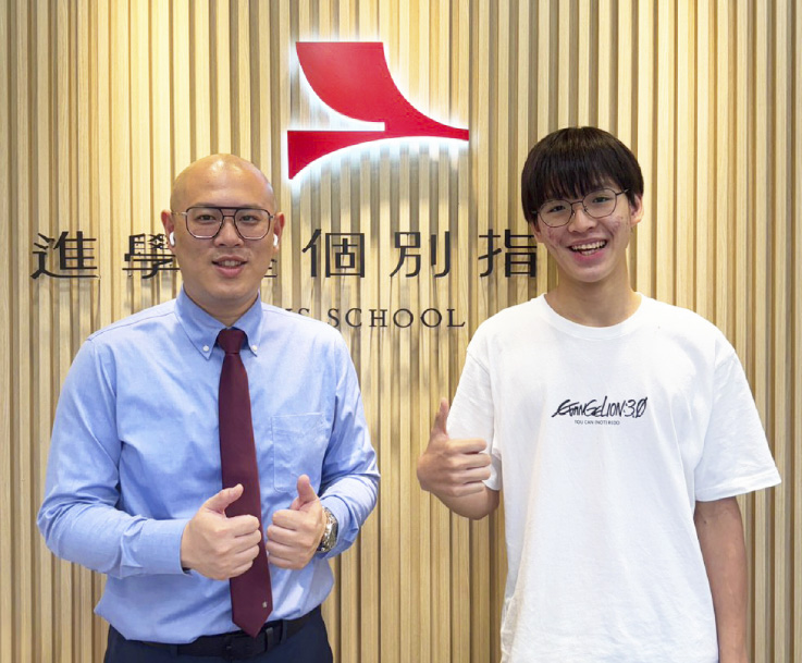 講師一對一的細心指導,讓我在感到疑惑時,能夠直接向講師發問,有時候在學校上課遇到問題,想問問題卻又不敢舉手,結果到最後下課鐘一響就忘記問,老師也回辦公室休息了,我也要準備下一節課的物品。多虧了一對一的上課模式,以及進學塾優秀的教學團隊,讓我能夠從2A進步到5A5+,而且教室長也會針對不同學生的需求,安排合適的學習計畫,這是在其他補習班無法獲得的待遇。正是因為這些特點,讓我在學習上如魚得水。